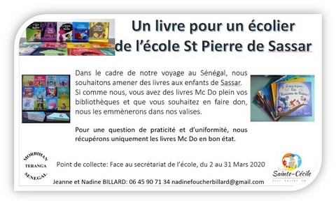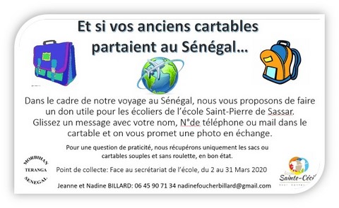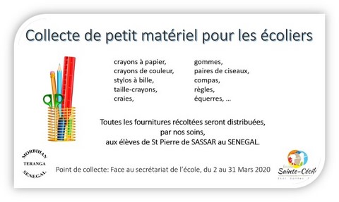 L’école Sainte-Cécile est jumelée depuis de très nombreuses années avec l’école Saint-Pierre de SASSAR au Sénégal. Cette école scolarise 396 élèves dont certains sont parrainés par vous parents qui avez souhaité en ce début d’année poser cet acte de solidarité.