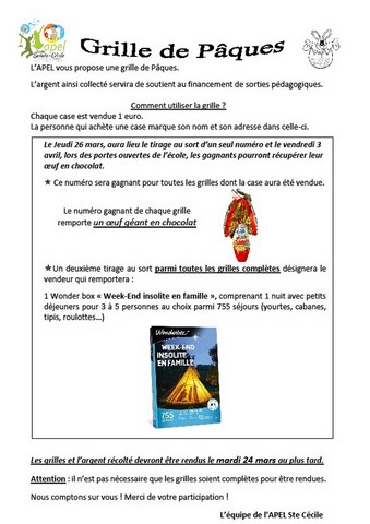 Action de l'A.P.E.L. - Grille de Pâques