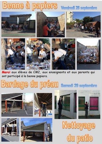 Les 28 et 29 septembre - L'OGEC organisait le ramasage de papiers et une matinée travaux.