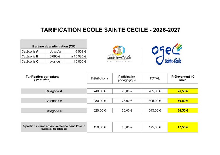 A l'école Sainte-Cécile, cette participation se compose de 2 éléments:A) La participation obligatoire