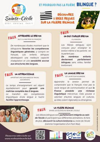 L'école Sainte-Cécile offre aux élèves la possibilité de recevoir l’enseignement en filière bilingue français/breton, pour moitié dans chaque langue, et ce, dès la Petite Section.