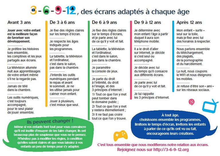 La règle que j’ai appelée « 3-6-9-12 » donne quelques conseils simples articulés autour de quatre étapes essentielles de la vie des enfants : l’admission en maternelle, l’entrée au CP, la maîtrise de la lecture et de l’écriture, et le passage en collège. A nous d’inventer de nouveaux rituels.